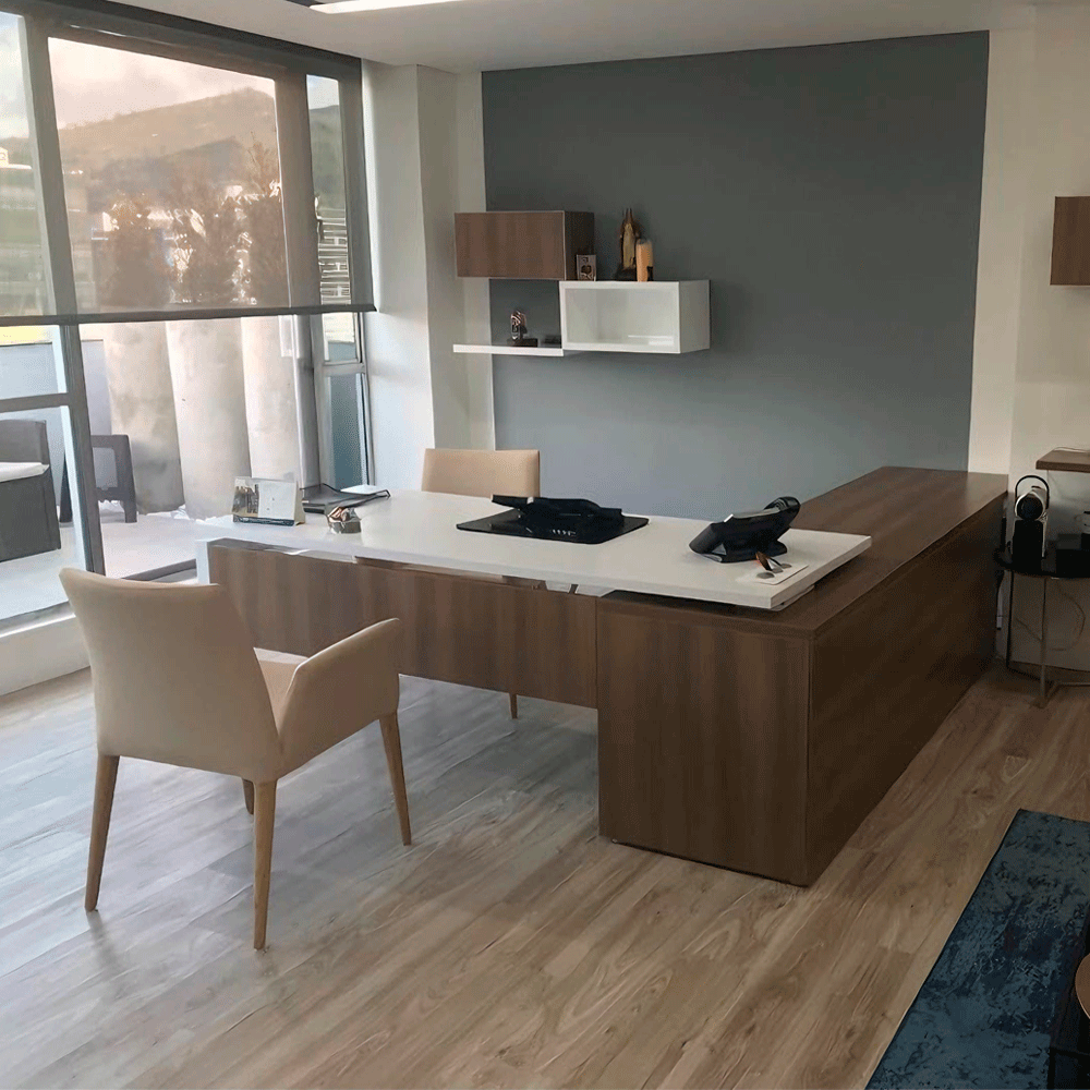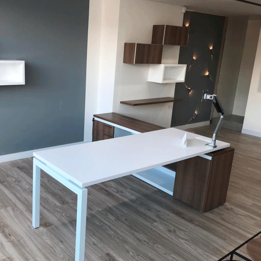 Puesto en L Gerencia perfectos y adaptables a cualquier tipo de espacio, cuentan con diferentes estilos y acabados según necesidad del cliente.
